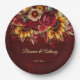 Casamento outono Borgonha rosas amarelos girassóis verdes arredores burgundy fundo personalizado monograma pratos impressos modelo personalizados decor de casamento personalizado