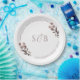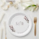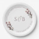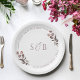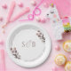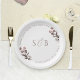 Prato De Papel Monograma Inicial Floral Roxo Casamento