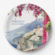 Arca Bougainvillea Amalfi costa vista Mediterrâneo chá de panela italiano Mediterrâneo pratos impressos de papel modelo chá de panela personalizado pranchas de casamento