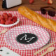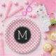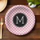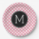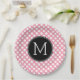 Prato De Papel Monograma Personalizado de Bolinhas Pretas e Rosa