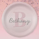 Prato De Papel Monograma Rosa Personalizável e Seu Script De Nome