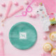 Prato De Papel Monograma Simples Verde Sutil Marble Moderno