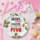 Chapas de papel de quinto aniversário do tema de morango giro, edite o texto você mesmo ao solicitar