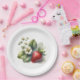Esta design de morango, balbuciada com suculenta bagas vermelhas e suculenta floração branca contra uma rica tapeçaria de folhas verdes, captura o espírito lúdico e doce da celebração de aniversário de uma criança, fazer-a um embelezamento ideal para favoritos para festas, decorações e presentes que encantarão jovens corações.