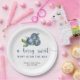 Cartão de convite para chá de fraldas em forma de grão com ilustração aquosa de mirtilos. O texto diz "um bebê doce de fruta está a caminho." Itens correspondentes disponíveis.