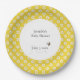 Baby shower paper plate or bowl personalized with a "mother-to-bee" theme. It's designed with a simple pattern of daisy flowers in yellows and whites with a cute little bee accent. Text is pre-formatted and ready for your own details. Coordinates with baby shower invitation and other items in this same collection.