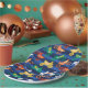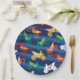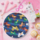 Conjunto de oito placas de papel de 9" com uma imagem de bicicletas de sujeira vermelha, laranja, amarela, verde e branca do Motorama em azul. Ver pote de doces correspondente, copo espresso, frasco, caneca, lançador, bule e portas copos. Veja a coleção inteira de Prata do Pai na COMIDA&BEV | Seção pratos.