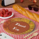 Receba uma refeição de apreciação ou um piquenique e envie uma mensagem de obrigados com estas placas de papel com lindas cores do outono de laranja, amarelo e marrom. O fundo exibe finas linhas horizontais em cores de outono que se parecem com palha ou grama seca. Um grande círculo no centro em laranja enferrujado fornece o fundo sólido para "Obrigado", que pode ser facilmente personalizado se você desejar. Foto original - C. McGouldrick