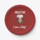 Cabeça de chef com chapéu, corcunda vermelha e texto personalizado.
