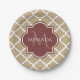 Prato De Papel Na moda Tan Quatrefoil Monograma e Nome da Borgonh