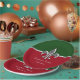 Personalize seu feriado que recolhe esta estação com estas placas de papel que caracterizam a imagem de uma flor de lis da prata do estilo do metal em um design verde e vermelho do Natal. Adicione seu nome da família ou do evento!