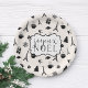 Adicione um toque de chic parisiense à sua festa de Natal com nossas placas de papel em marfim quente e preto, com um padrão de silhuetas da torre Eiffel, árvores de Natal, croissants, macarons, presentes envoltos, flocos de neve, rosas e xícaras de café. "Joyeux Noel" (Feliz Natal em Francês) aparece no centro em uma mistura de escrita manual e tipografia de blocos.