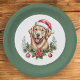 Estas placas de papel de Natal para o Retriever de Ouros são a adição perfeita a qualquer janto familiar. Este design é completo com um gráfico de aquarela adorável e fofo para resgatador de ouros. O cão do recuperador de ouros está vestindo um chapéu de Papai Noel e está rodeado por várias decorações de Natal. A cor de fundo é verde. Aproveite o feriado!