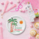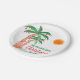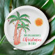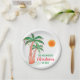 Natal personalizado em julho - Placa de Papel do Partido. Vamos comemora o Natal em julho com um CHURRASCO ou festa! Convide familiares e amigos para comemoração tematizada do Natal e decore-a com estas placas de papel em estilo ilha, com palmeiras desenhadas à mão, decoradas com luzes. Facilmente personalizável com seu nome. Desenho original © Michele Davies.