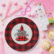 Prato De Papel Natal Russo da Xadrez de Buffalo Vermelho