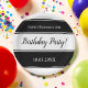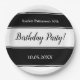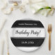 Esta elegante prata de papel preto e branco é perfeita para um aniversário moderno. O simples design apresenta uma caligrafia elegante em preto-e-branco sobre um fundo listrado preto-e-branco.