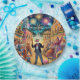 Immerse yourself in the festive spirit of Latin America with this captivating illustration. This vibrant scene depicts a lively village coming together to ring in the New Year. Colorful traditional clothing adorns the dancing figures, while festive decorations like twinkling lights, confetti, and streamers create a magical atmosphere. At the center of the celebration stands a smiling elderly man, symbolizing the passing of the old year. He holds cherished tokens representing a prosperous year ahead: a bundle of wheat, a piggy bank, and a small house. The background bursts with fireworks illuminating the night sky above charming colonial-style buildings. This joyous artwork captures the essence of the celebratory spirit and the hope for a bright new beginning.