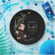 Pratos de papel elegantes para chá de noiva em vários tamanhos e estilos apresentam flores silvestres em aquarela e seus detalhes em letras elegantes em um fundo preto. Itens CORRESPONDENTES em nossa coleção.