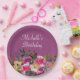 Placas de papel personalizadas de bolsa mensageifesta de aniversario elegante para mulheres com flores e folhagem coloridas cor-de-rosa, púrpura e amarelas, cor de-água, num fundo roxo coordenado. Personalizado com seu nome, mas o texto personalizável permite adicionar qualquer texto que você escolher. Entre em contato comigo para obter assistência com a personalização ou para solicitar correspondência ou coordenação de produtos Zazzle.