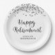 Chapas de temas negros e prateados com uma borda de confete com brilho prateado e o título RETIREMENT FELIZ numa letra moderna. Personalize-o com o nome do aposentado, o número de anos de serviço e o nome da empresa, escola ou organização ou mensagem pessoal. Entre em contato com o designer se você quiser que este design seja modificado, em outro produto ou quiser coordenar itens para o conjunto de sua parte.