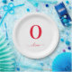 Prato De Papel Nome do Script Monograma Branco Personalizado E Ve