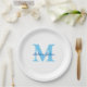 Prato De Papel Nome Personalizado Monogramas Chás de fraldas Azul