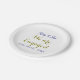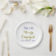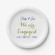 Prato De Papel Nós estamos noivos nome data dourado roxo elegante