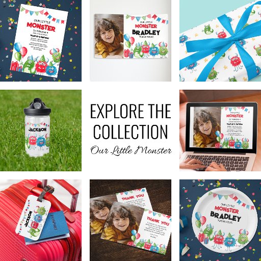 Celebre o dia especial do seu monstro com a nossa festa de aniversário divertida e moderna de monstro! Nossas placas de papel personalizadas apresentam monstros de aquarela em tons de verde, azul e vermelho, assim como uma foto do seu pequeno monstro. Crie as memórias da vida com a sua família e amigos e desfrute de uma festa de aniversário diferente de qualquer outra!