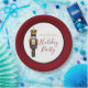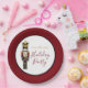Serve your holiday treats in timeless style with this festive Holiday Paper Plate featuring a charming hand painted watercolor nutcracker. The design includes a bold red rim bordered by a thin black line for an elegant, classic look. The white center showcases the nutcracker artwork with customizable text for your family name or event and elegant script reading Holiday Party. Perfect for Christmas dinners, office celebrations, or festive gatherings, these disposable plates combine sophistication with seasonal cheer. Their sturdy design makes them ideal for appetizers, desserts, or full meals while adding a coordinated touch to your table decor. Part of the Holiday Nutcracker Collection, this paper plate pairs beautifully with matching napkins, invitations, return address labels, gift tags, and more for a complete and cohesive Christmas party suite.
