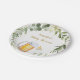 Estas placas de papel apresentam um verde-aquarela com uma garrafa de cerveja e bebê e um sotaque de folha de ouro.
