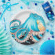 Prato De Papel Octopus Azul Na Tinta Branca