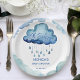 Chapas de modelo de chá de fraldas de de nuvem de bebê personalizadas decoram nuvens de cor-d-água fofinha azul com gotas de chuva chá de fraldas pratos personalizados