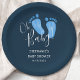 Estas placas de papel simples e de chá de fraldas são decoradas com pés de bebê de cor d'água pintados à mão, em azul pastel, sobre fundo azul-marinho escuro. Dizem "Oh Baby" na tipografia de na moda. Facilmente personalizável. Porque nós criamos a nossa trabalho de arte, você não encontrará esta imagem exata de outros designers. Original Watercolor © Michele Davies.