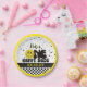 The playful design highlights the word ONE with a faux glitter yellow “O” styled as a smiling face — complete with a lightning bolt eye to give it a cool wink effect. The upbeat “One Happy Dude” typography adds energy and personality, making this plate perfect for trendy, fun-loving first birthday celebrations.