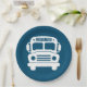 Prato De Papel Ônibus da escola branca em fundo azul