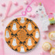 Coloque a mesa da festa com placas de papel coordenadas, com um padrão de fantasmas alegres e sorridentes e arcos pretos de fita em um fundo laranja. O texto personalizado ajuda você a personalizar essas placas para ajustado do seu evento fazer-as do perfeito para festas de Halloween ou Baby Boo está quase atrasado chás de fraldas de outubro, esses pequenos fantasmas certamente trarão um sorriso para seus convidados.