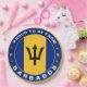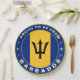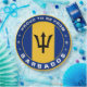 A bandeira nacional de Barbados é infundida numa forma circular que ela própria é colorida nas cores da bandeira. Junto com as estrelas decorativas, há o texto orgulhoso e patriótico.