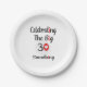 Placas de papel para uma festa para alguém comemorando a aniversário de 30 anos. Letras negras e vermelhas "Celebrando os 30 Grandes"