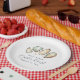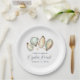 Adicione um toque especial à sua festa assada de ostras com estas placas de papel legal em estilo náutico, com ilustrações de ostras e pérolas em creme macio e aqua aqua. "Oyster Roast" aparece abaixo na letra chic script, junto com duas linhas de texto personalizado.