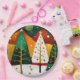 Essa trabalho de arte vibrante e estilizada apresenta um pomar festivo de árvores de Natal em estilo ousado e decorativo. Quatro árvores únicas ficam em uma paisagem coberta de neve: duas são renderizadas como formas cônicas abstrato em verde e branco profundo, enquanto as outras duas são mais fluidas, com troncos e galhos ouros. Todos são enfeitados com ornamentos ouros e vermelhos e revestidos com uma estrela brilhante. O fundo é uma abstrato de tapeçaria rica de colinas rolantes em tons de verde, vermelho, laranja e preto, pontilhados com larvas brilhantes. A peça combina um tema festivo de feriado com uma abordagem moderna e expressiva da forma e da cor.