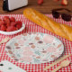 Prato De Papel Padrão Azul Cor-de-Rosa Floral