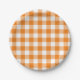 Prato De Papel Padrão Clássico de Xadrez de Gingham Branco Laranj