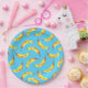 Bananas tropicais pintadas à mão em aquarelas decoram esta placa de papel de festa personalizada. Ajuste o padrão à sua preferência e escolha qualquer cor para o plano de fundo. É um padrão divertido para uma festa temática tropical!