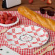 Padrão de cães Bulldog Francês em vermelho coral com monograma pessoal