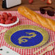 Prato De Papel Padrão de Dragão Azul e Dourado
