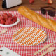 Prato De Papel Padrão de Faixa Vertical Branco Laranja