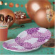Bonito padrão de flores roxo e vintage em produtos de festa com opção de personalização.