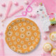 Este é um lindo e feliz sorriso do padrão das flores brancas retro hippie em fundo laranja. É uma placa de papel para crianças festas de aniversário