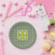 Prato De Papel Padrão de Flores Verdes do Monograma