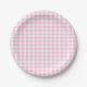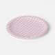 Prato De Papel Padrão de Gingham Branco e Rosa Elegante